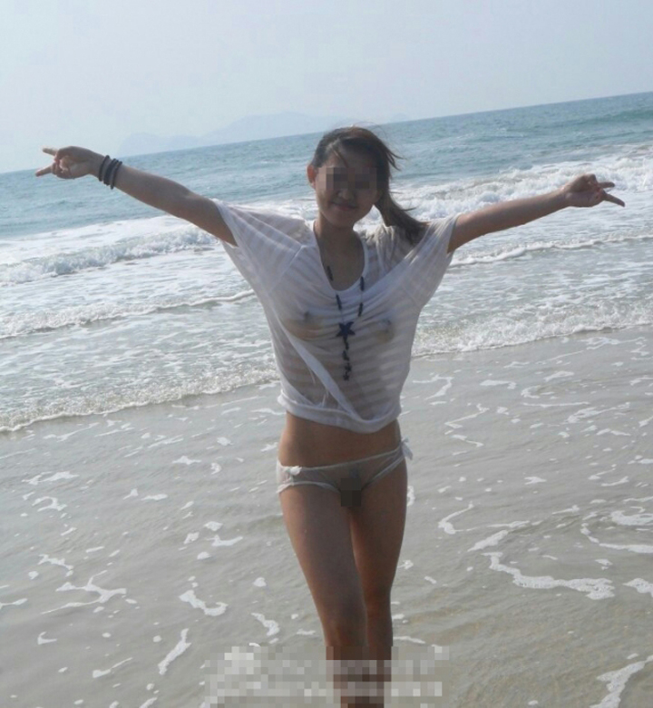 もうこれ痴女だろ…白系の水着で乳首が透け透けじゃねーかよwwwww